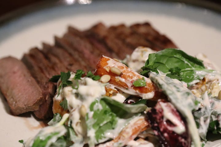 Grilled Lamb with Roasted Pumpkin, Beetroot and Carrot Salad